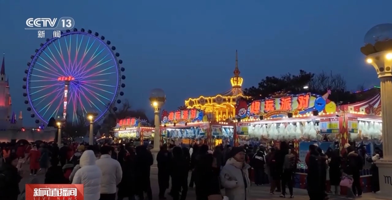 北京:賞燈夜游歡樂(lè)多 游樂(lè)園里年味濃