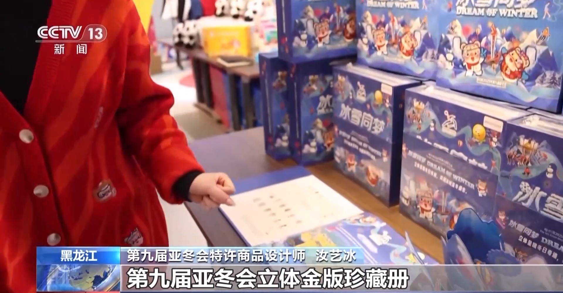 第九屆亞冬會(huì)特許商品設(shè)計(jì)師 汝藝冰:第九屆亞冬會(huì)立體金版珍藏冊(cè),第一大主題,就是我們的雙亞冬之城主題,前面就是我們的1996年第三屆亞冬會(huì)以及2025年第九屆亞冬會(huì)。那第二個(gè)板塊,就是我們的奧運(yùn)冠軍之城主題,是2022年6月份授予哈爾濱的榮譽(yù)稱號(hào)?! ?img alt="" src="./W020250207709257910442.jpg" OLDSRC="W020250207709257910442.jpg" />