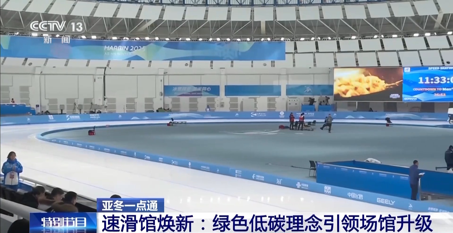 此外,運動員在激烈的比賽中,冰刀會破壞冰面。所以,在比賽間隙時就要進行澆冰,將滑道的平整度、溫度調(diào)整到最好狀態(tài)。本屆亞冬會,場館中的澆冰車更新為了先進的電子澆冰車,能把水均勻平整地澆在冰面上,隨后冰層下面的冷排設(shè)備會將低溫傳導(dǎo)到冰面上,讓水快速冰凍,從而起到修復(fù)冰場的作用。澆冰的效率和精細化程度更高,保障了各國運動員們能滑出好成績。