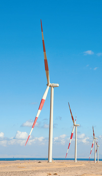 蘇伊士灣風(fēng)電項(xiàng)目位于埃及首都開羅以南約300公里的蘇伊士灣西岸小鎮(zhèn)拉斯·加里卜。項(xiàng)目共有77臺(tái)風(fēng)電機(jī)組,建成后預(yù)計(jì)每年可生產(chǎn)約27億千瓦時(shí)的清潔電力,實(shí)現(xiàn)二氧化碳減排約100萬(wàn)噸。穆罕默德說(shuō):“在這片曠野上工作,把蘇伊士灣的風(fēng)轉(zhuǎn)化成電能,‘點(diǎn)亮’萬(wàn)家燈火,我感到十分驕傲?!?/p>