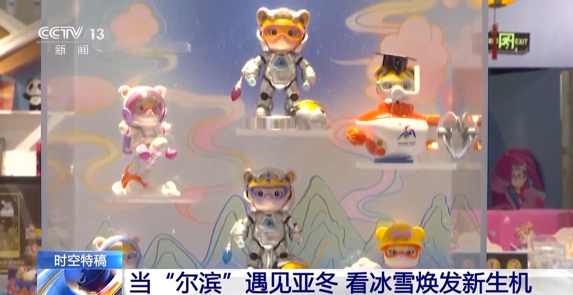 總臺央視記者 鄭怡哲:看完了亞布力的絕美雪景和熱鬧非凡的雪場,讓我們回到哈爾濱的市區(qū)來看一看。那要說什么地方最能體現(xiàn)黑龍江哈爾濱兩屆亞冬會城市這一端的變化,那一定是這個雙亞冬的紀(jì)念館,其實我覺得從紀(jì)念品上就能看出這個城市的特點和發(fā)展脈絡(luò)。