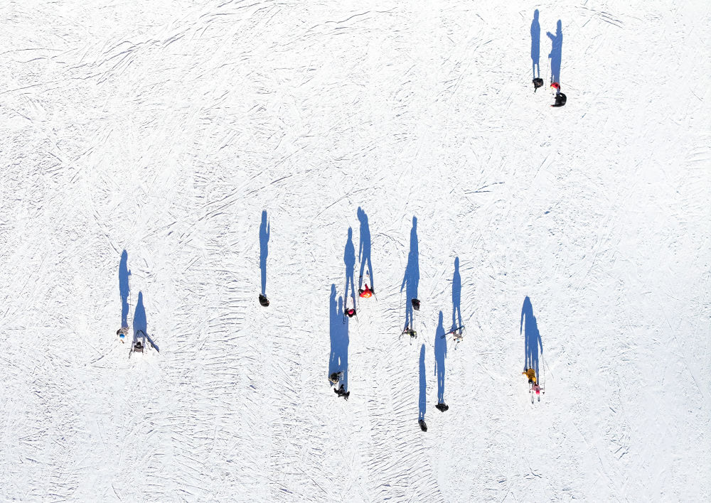 滑雪愛好者在內(nèi)蒙古呼倫貝爾扎蘭屯市金龍山滑雪場(chǎng)滑雪(無人機(jī)照片)新華社記者連振 攝