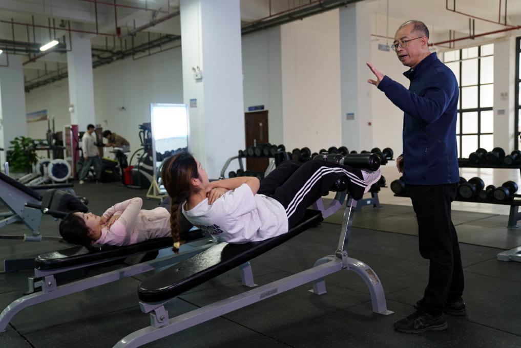 2月17日,在廣西體育高等專科學(xué)校,韋軍在指導(dǎo)學(xué)生進(jìn)行體育鍛煉。新華社記者 陳露緣 攝