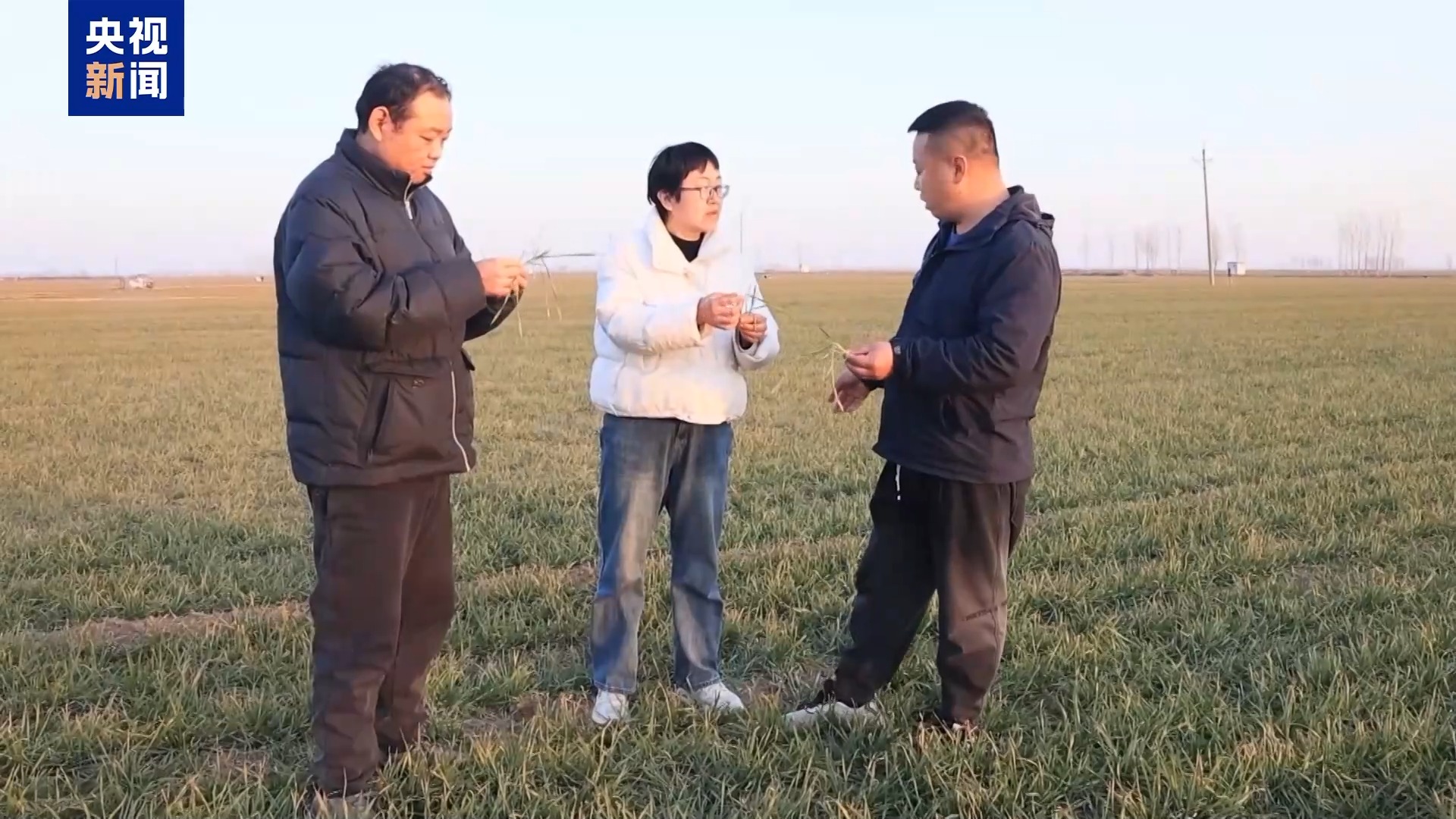 在山東煙臺招遠市一處麥田里,農(nóng)技專家正仔細查看小麥的生長情況。