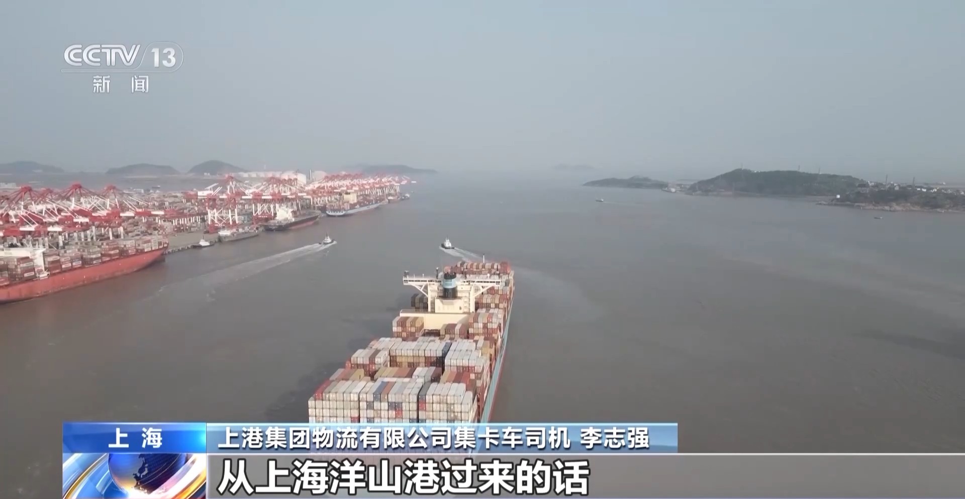 上港集團物流有限公司集卡車司機 李志強:我們每天從上海洋山港過來,應該是六趟到七趟左右,收入肯定是比去年更可觀了。