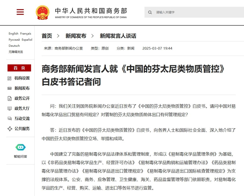 問:我們關注到國務院新聞辦公室近日發(fā)布了《中國的芬太尼類物質管控》白皮書。請問中國對易制毒化學品出口貿易有何規(guī)定?對管制的芬太尼類物質前體出口有何管理規(guī)定?