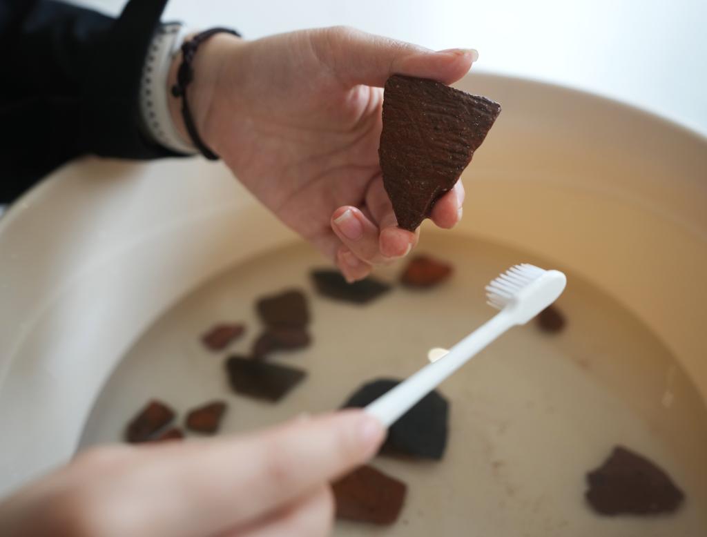 3月11日,在遼寧省朝陽市北票市的考古人員住所,考古人員在清洗調(diào)查現(xiàn)場發(fā)現(xiàn)的碎陶片。當(dāng)日,來自遼寧省文物考古研究院的考古人員在遼寧省朝陽市雙塔區(qū)調(diào)查紅山文化遺址。此前,考古人員在遼寧省朝陽市凌源無白丁遺址群新發(fā)現(xiàn)多處紅山文化遺跡。新華社記者 李鋼 攝