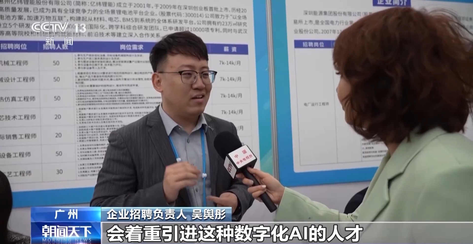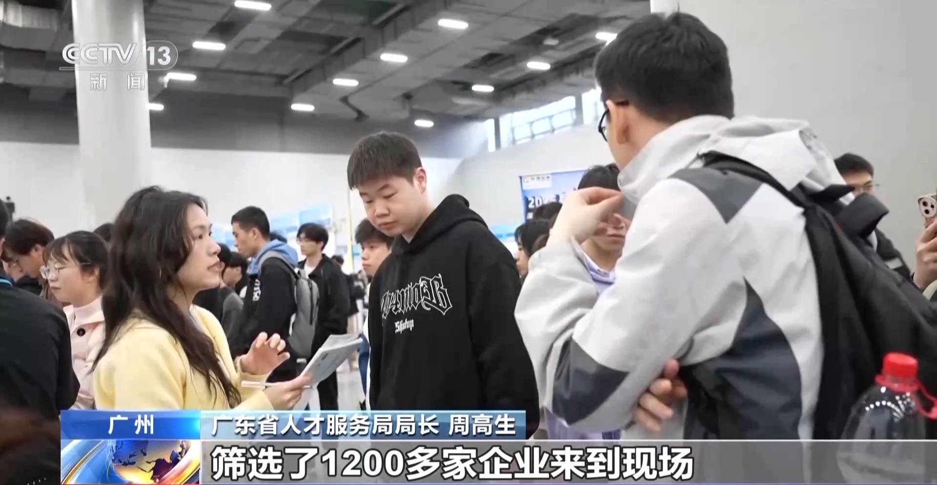 總臺央視記者 唐蕾:在廣州市琶洲廣交會展館,和往年比,今年春招規(guī)模擴大了近3倍,在這里,不僅有一站式的招聘會,還有人工智能與機器人專場項目對接會等多種人才對接活動。