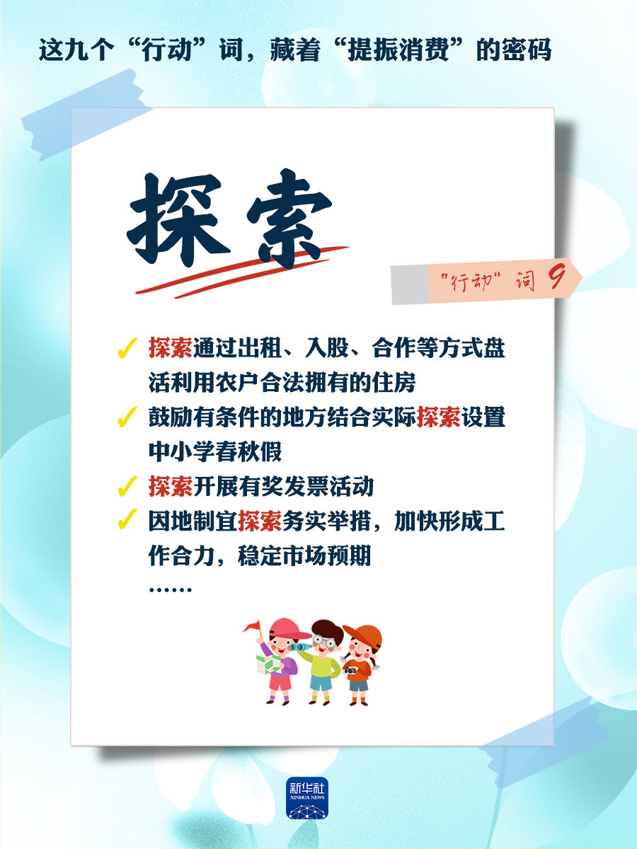 我們梳理出“方案”中使用頻率較高的九個(gè)“行動(dòng)”詞,從這些不同維度的“行動(dòng)”詞中,解讀“專項(xiàng)行動(dòng)”的豐富內(nèi)涵和政策“含金量”,看看哪些是立竿見影、吹糠見米的惠民行動(dòng)?哪些是需要加力擴(kuò)圍、加快補(bǔ)齊的消費(fèi)短板?還有哪些是需要有序推進(jìn)、以點(diǎn)帶面的消費(fèi)“新”點(diǎn)?