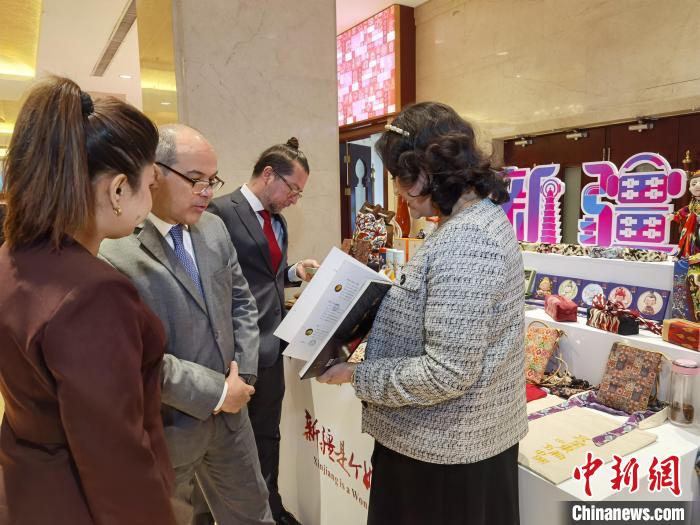 3月31日,新疆在北京舉辦有關(guān)國家駐華使節(jié)交流會(huì),來自43個(gè)國家和國際組織的70位外賓出席。圖為外賓在新疆特色產(chǎn)品展區(qū)參觀。 中新社記者 徐雪瑩 攝