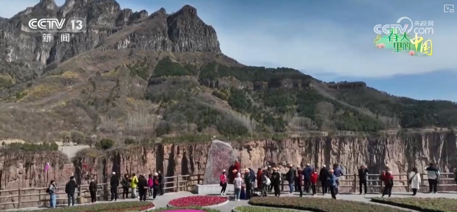 在新鄉(xiāng)輝縣市南太行萬仙山景區(qū),海拔1300米的山腰上,三五成簇的連翹花盛開在崖壁、山坡和溝谷當中,為巍峨的太行山披上一身“黃金甲”。淡雅的黃色花瓣在溫柔的春光里隨風舞動、芳香四溢,游客們在山巒花海中感受濃濃春意。