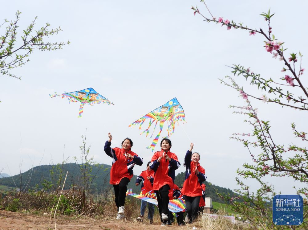 ↑ 4月3日,四川省達州市渠縣新市鎮(zhèn)第一小學(xué)學(xué)生在陽光大課間放風(fēng)箏。新華社發(fā)(鄧良奎攝)