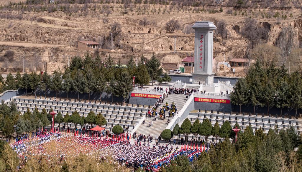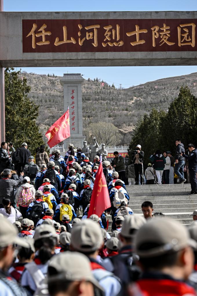 4月3日,參加徒步祭英烈活動的師生抵達位于彭陽縣的任山河烈士陵園。
