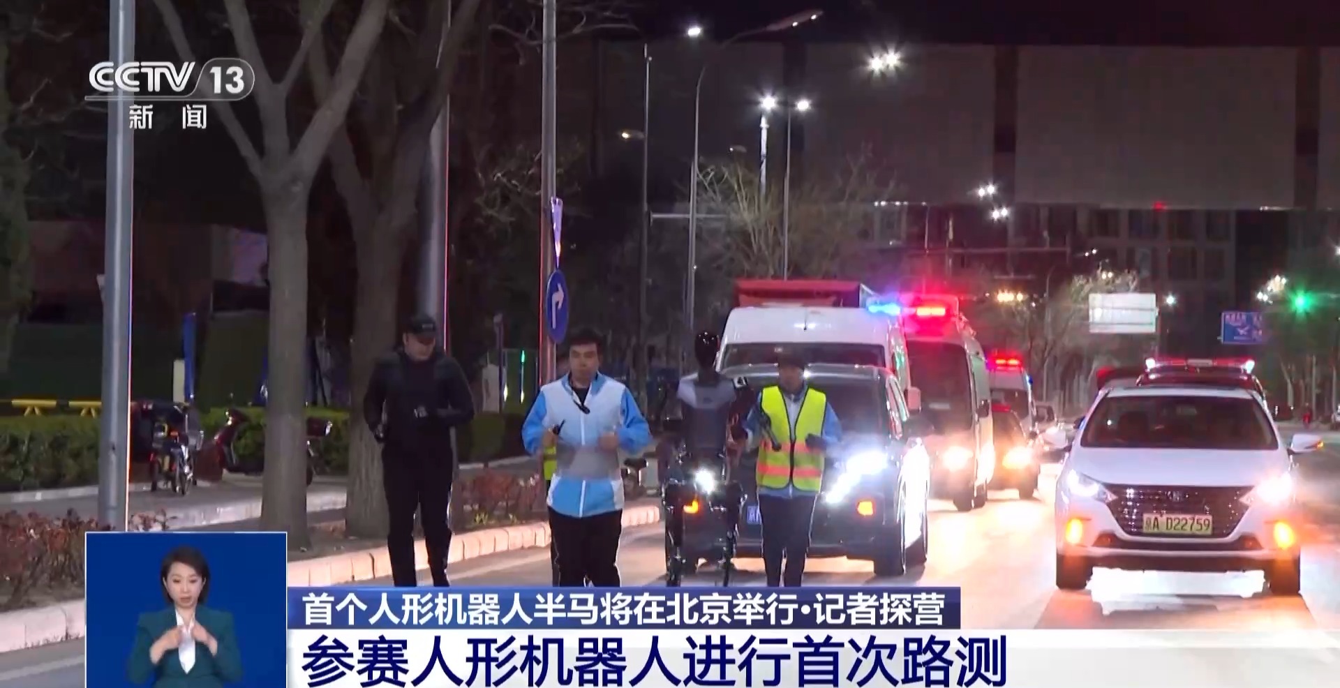3月28日晚,在北京亦莊,報名參加北京亦莊半程馬拉松的機器人進行了第一次實地路面測試。