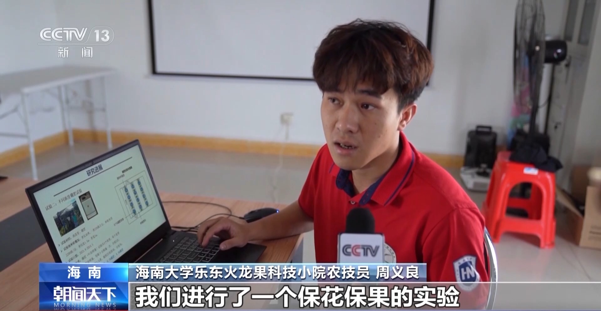 海南大學(xué)樂東火龍果科技小院農(nóng)技員 周義良:根據(jù)這個現(xiàn)狀,我們進(jìn)行了一個?;ū9膶?shí)驗(yàn),通過不同濃度的硼肥、氨基酸肥、授粉和溫度調(diào)控來進(jìn)行實(shí)驗(yàn),坐果率提升了20%左右。