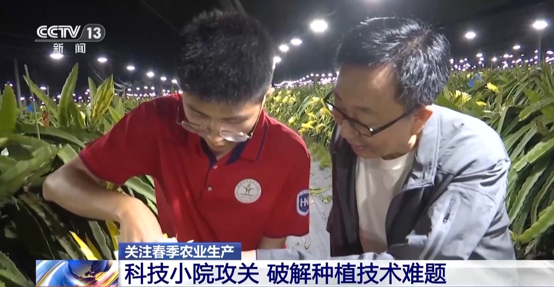 不僅僅是燕窩果,像傳統(tǒng)的熱帶水果火龍果的種植難題,也正在通過科技小院的技術(shù)得以攻破。晚上八點(diǎn)多,尖峰鎮(zhèn)方圓幾十里火龍果種植園區(qū)燈火通明,而夜晚點(diǎn)亮燈光的目的是給火龍果補(bǔ)光,讓枝條能夠長出花苞并順利開花。火龍果開花時(shí)間一般在晚上八點(diǎn)到十二點(diǎn)之間,為此科技小院的技術(shù)人員還研發(fā)了可以短時(shí)間完成授粉的技術(shù)模式。