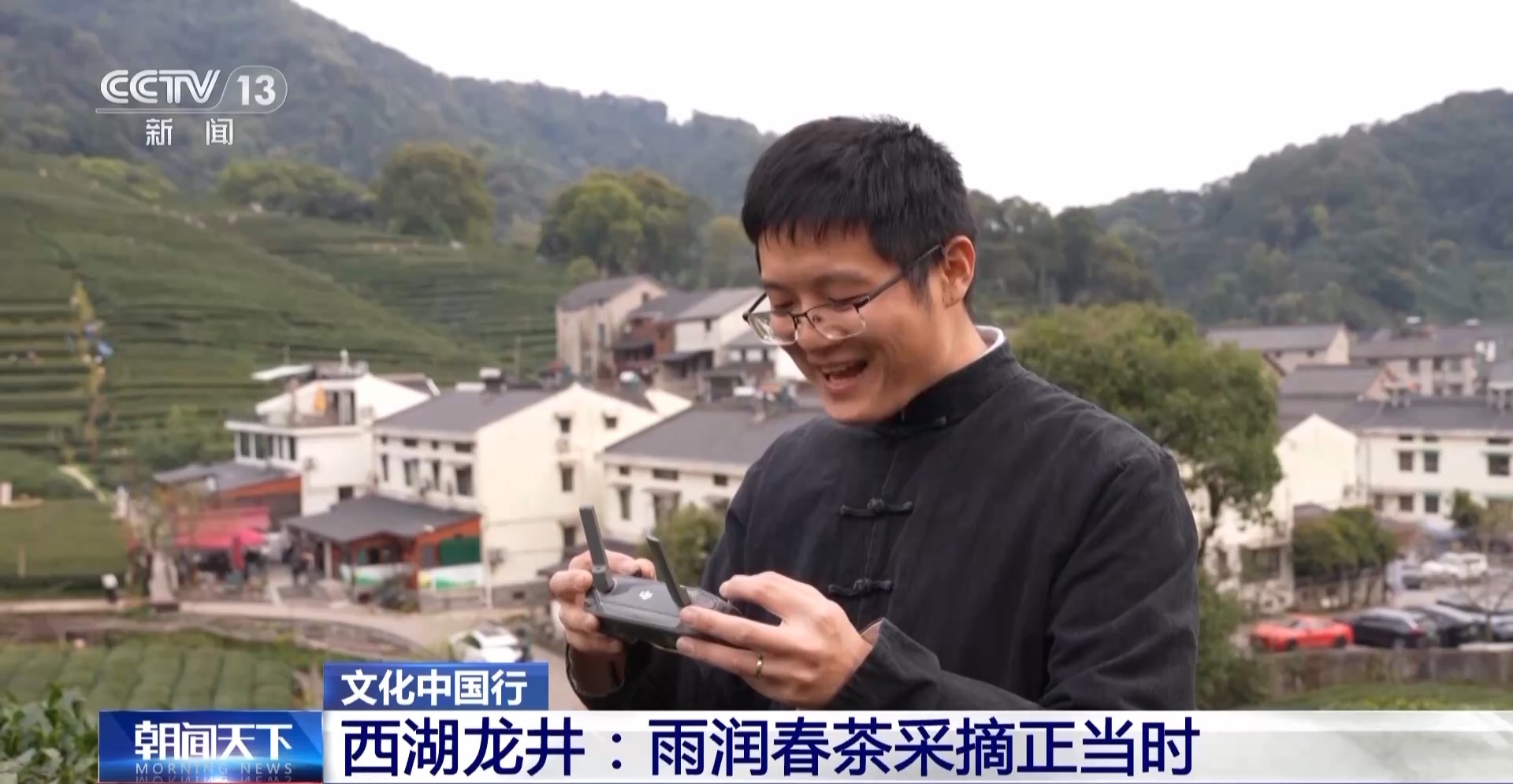 在西湖龍井核心產(chǎn)區(qū)梅家塢村內(nèi),“90后”的新茶人徐名駿正通過(guò)無(wú)人機(jī)旅拍的方式,幫助游客記錄在茶園中的美好瞬間。計(jì)算機(jī)專業(yè)出身的他,早在大學(xué)時(shí)便有了將茶園與旅游相融合的想法,為游客提供采茶、炒茶和點(diǎn)茶體驗(yàn)的同時(shí),還設(shè)計(jì)多個(gè)拍攝點(diǎn)位,打造“采茶+拍照”一站式服務(wù)。