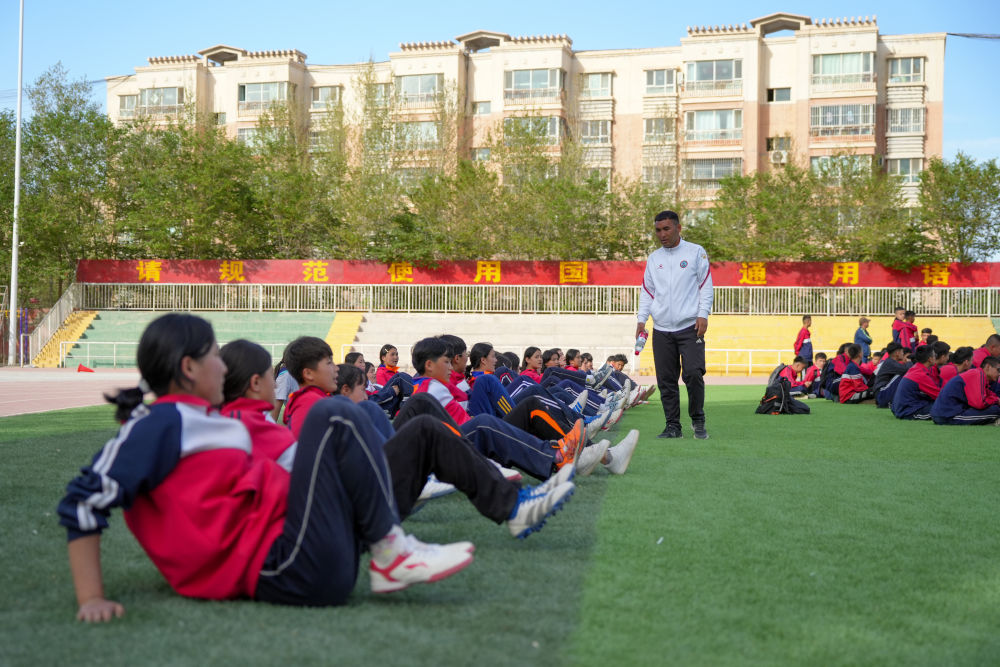 ↑4月10日,在阿圖什市硝魯克中學(xué),隊(duì)員們?cè)谶M(jìn)行訓(xùn)練。新華社記者 徐宏巖 攝