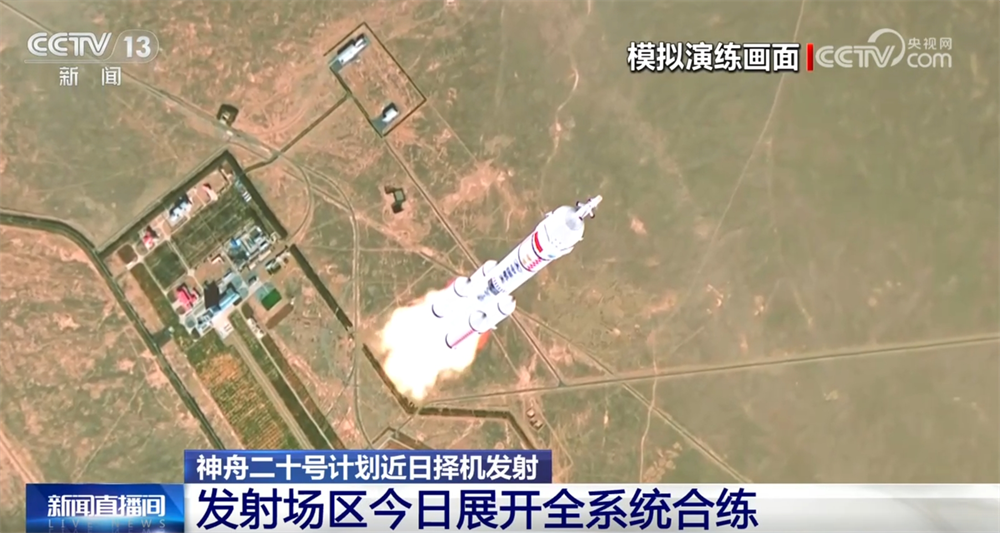 神舟二十號(hào)船箭組合體已于4月16日轉(zhuǎn)運(yùn)至發(fā)射區(qū),計(jì)劃將于近日擇機(jī)發(fā)射。4月20日,發(fā)射場(chǎng)區(qū)組織各單位展開(kāi)全系統(tǒng)合練。