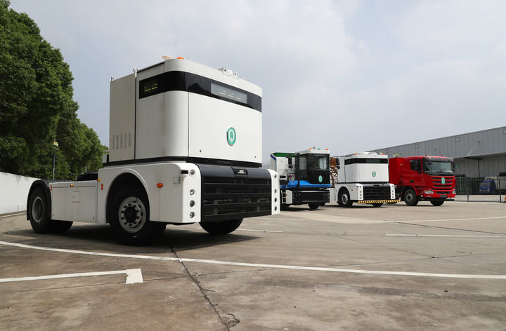 2023年9月26日,一輛西井科技的無人駕駛重卡Q-Truck(前)在位于上海的無人駕駛商用車聯(lián)合實(shí)驗(yàn)室場地上進(jìn)行動(dòng)態(tài)測試。新華社記者 方喆 攝