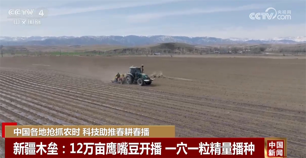 新疆木壘:12萬(wàn)畝鷹嘴豆開(kāi)播 一穴一粒精量播種