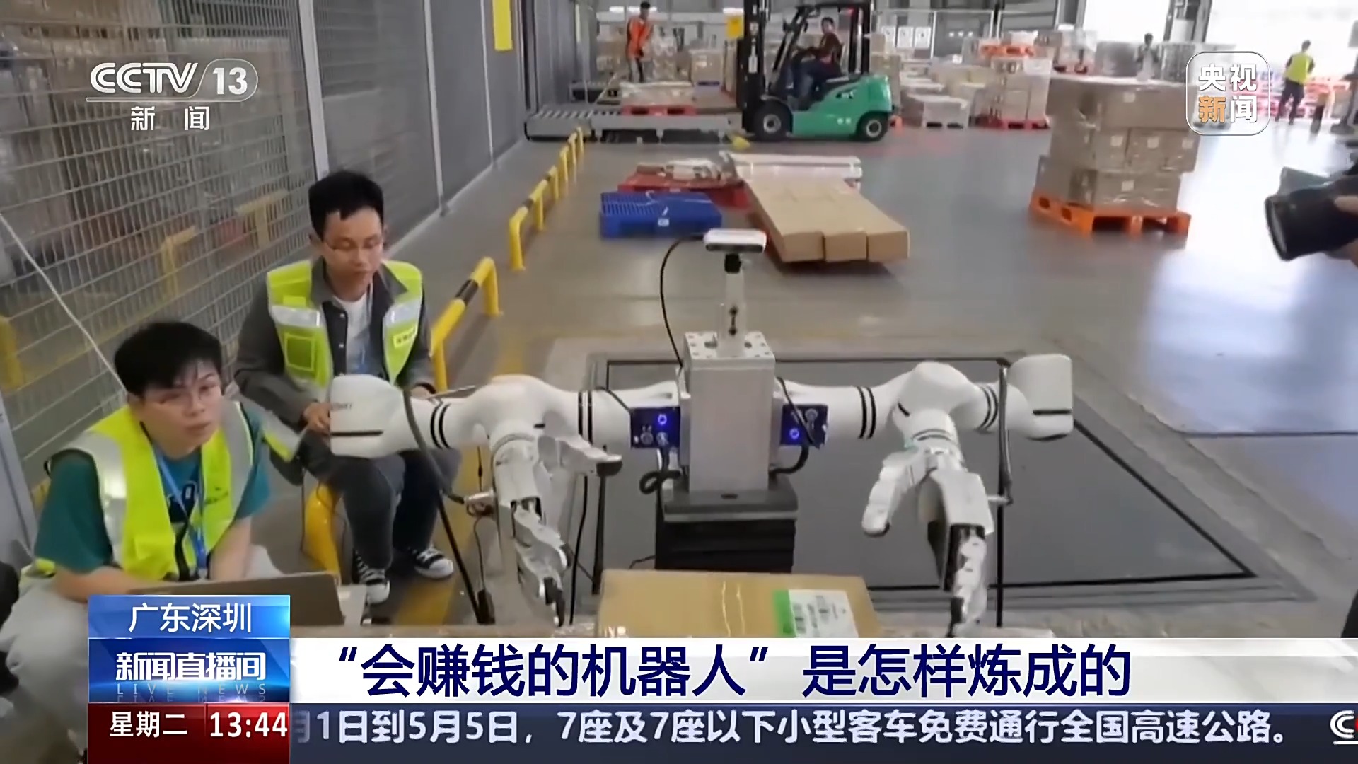在深圳寶安機場的國際貨站,一家機器人企業(yè)正在調(diào)試他們的機器手,測試這款機器手產(chǎn)品是否可以在機場貨物分揀場景中使用。