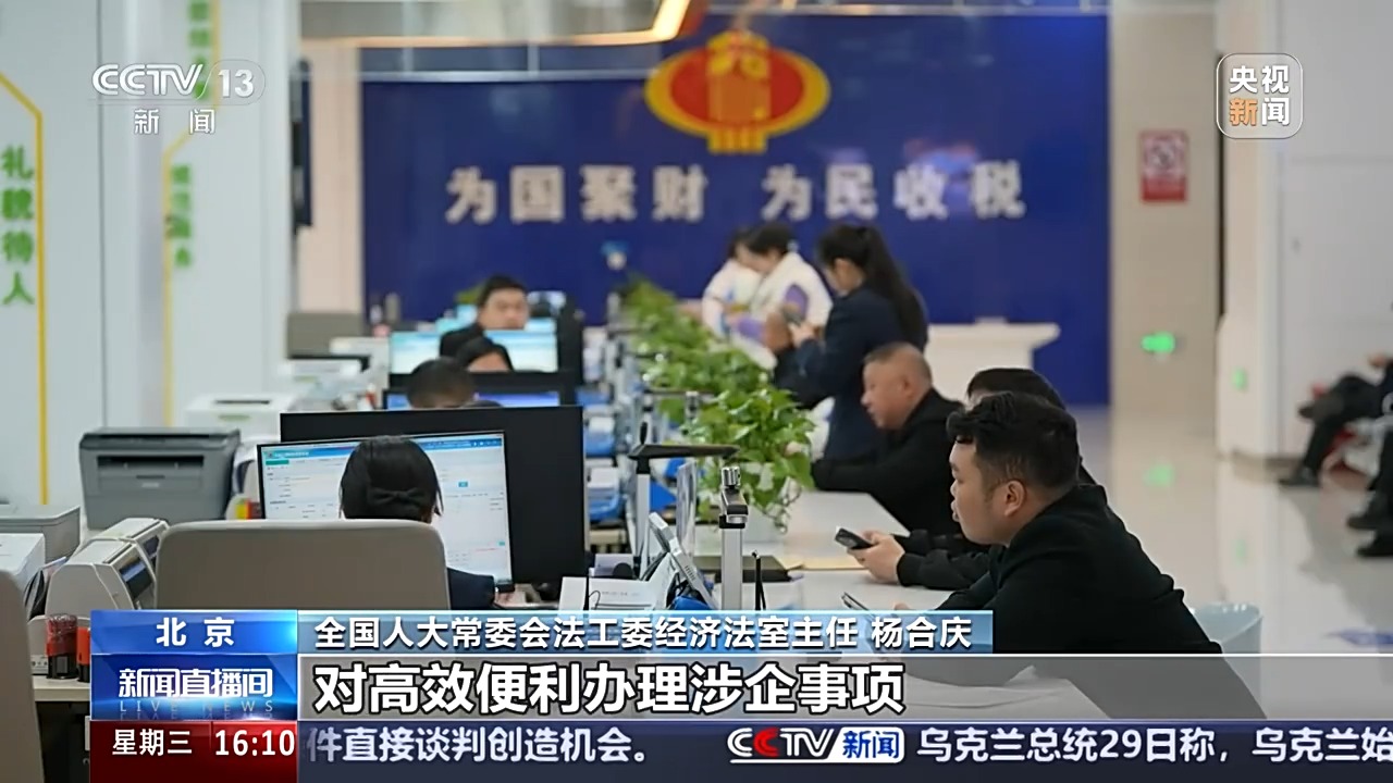 全國人大常委會法工委經(jīng)濟法室主任 楊合慶:強化行政執(zhí)法監(jiān)督,堅決遏制“亂收費、亂罰款、亂檢查、亂查封”等行為,對高效便利辦理涉企事項、完善人才激勵政策、健全信用修復制度、健全糾紛多元化解機制、發(fā)揮行業(yè)協(xié)會商會作用、加強海外綜合服務和權益保護等作出規(guī)定。