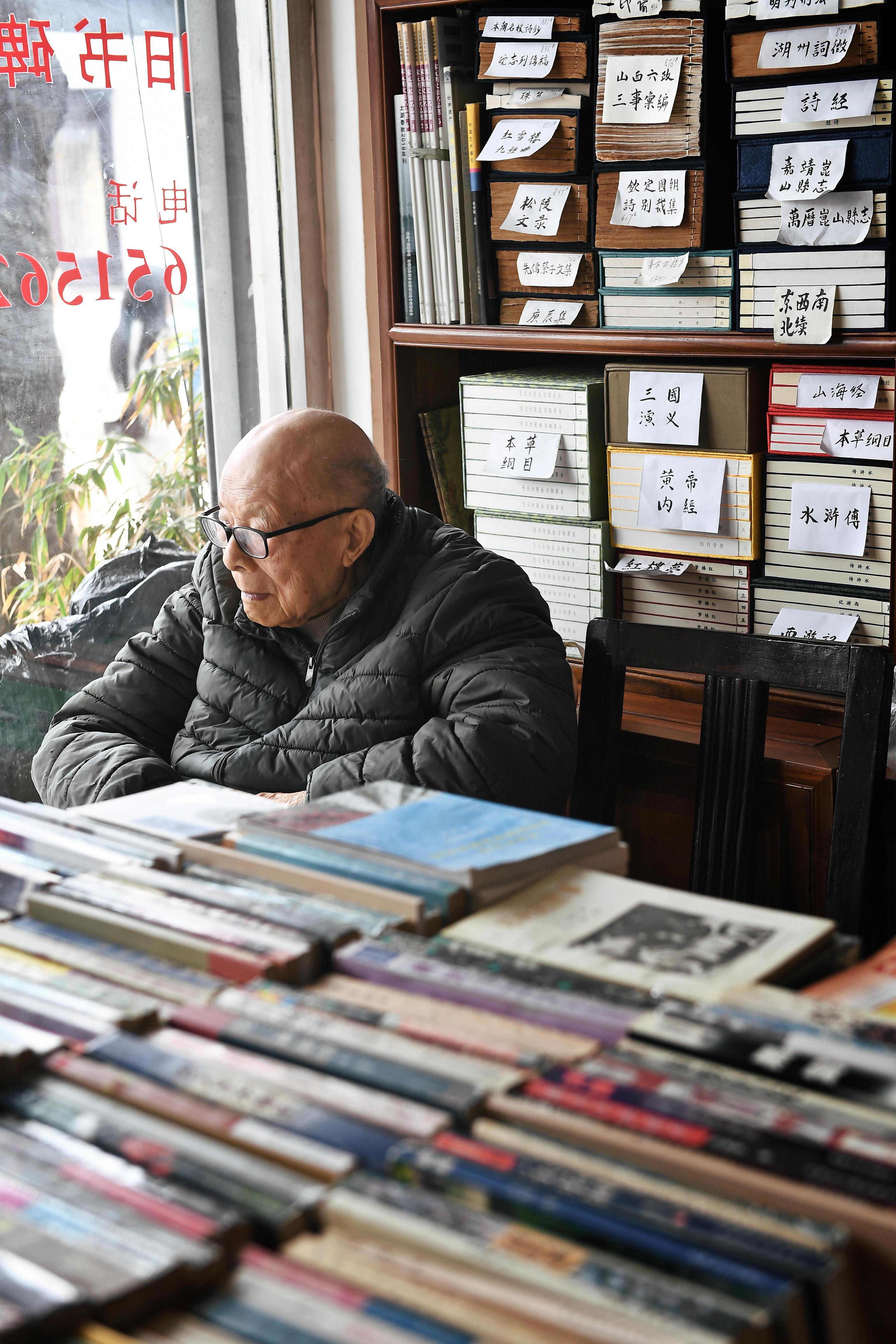 “我守的是書呀?!苯尾ù稹Kf,坐在書店里,他就安心,一天不摸舊書,他心里就不踏實。