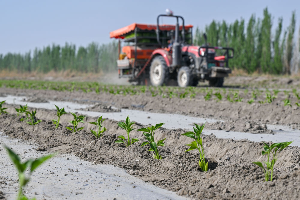 雨過天晴陽(yáng)光正好,拖拉機(jī)轟隆隆駛過地壟,嫩苗扎下根后隨風(fēng)搖曳。數(shù)月過后,成熟的辣椒、番茄、枸杞又將在戈壁灘上匯成一幅幅火紅的豐收畫卷。(記者茍立鋒、丁磊)
