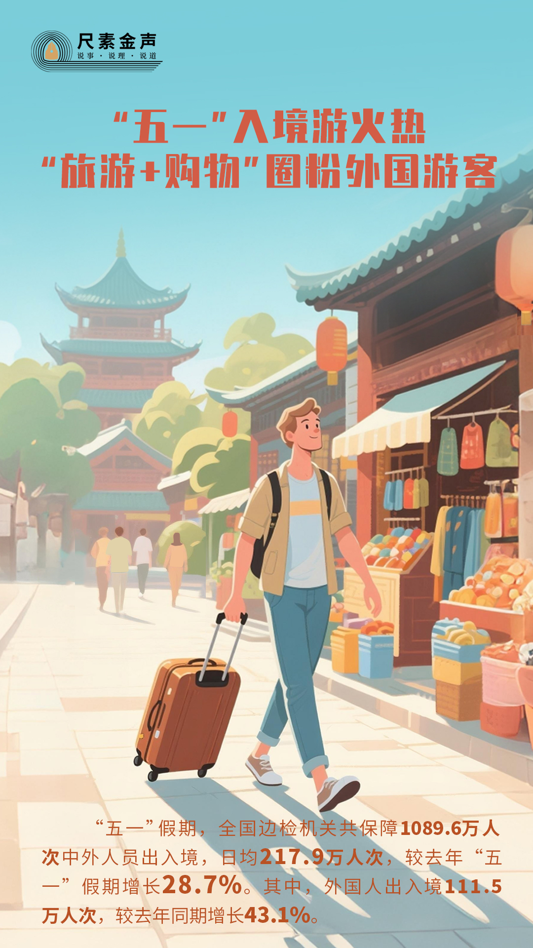 “五一”假期,文旅市場供需兩旺、欣欣向榮,入境游更是熱度高漲。國家移民管理局?jǐn)?shù)據(jù)顯示,這個假期,全國邊檢機關(guān)共保障1089.6萬人次中外人員出入境,日均217.9萬人次,較去年“五一”假期增長28.7%。其中,外國人出入境111.5萬人次,較去年同期增長43.1%。四成多的高增速,從一個側(cè)面折射出中國在全球旅游市場的強大吸引力。