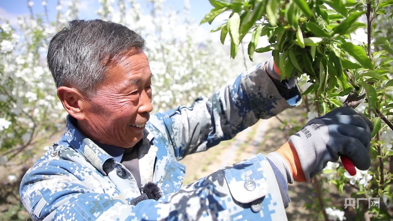 村民高忠標在修剪果樹(央廣網記者 魏全民 攝)