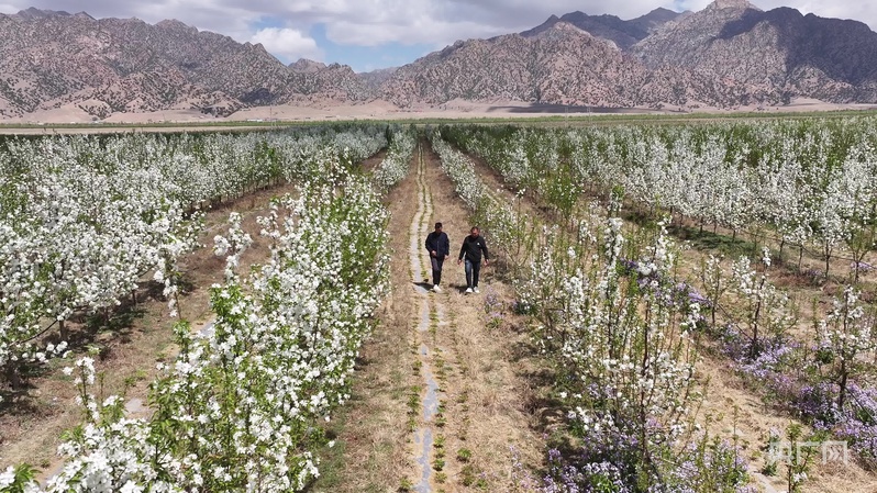 步入內蒙古巴彥淖爾市烏拉特前旗白彥花鎮(zhèn)塔漢其嘎查林果產業(yè)園,大片果樹迎來最美花期,微風拂過,花香沁人心脾,果園里村民高忠標正專注地修剪著果樹?!拔医衲?0多歲了,在這里打工五六年了,一個月能掙五六千塊錢,挺好的?!?/p>