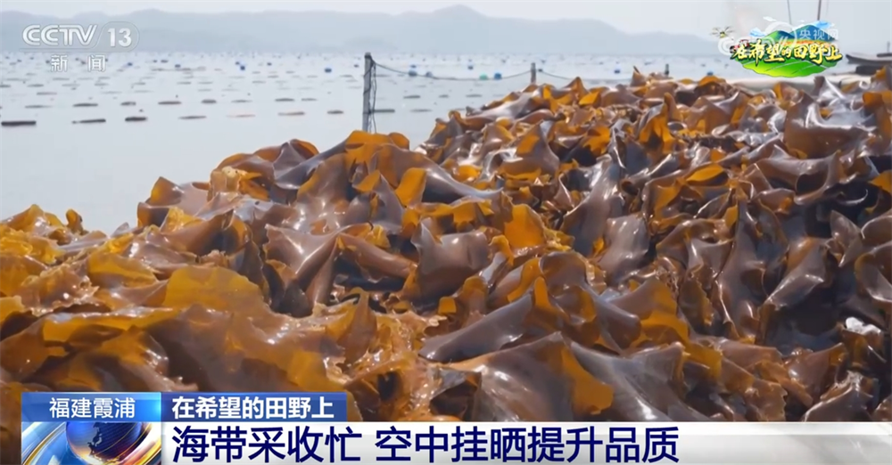 福建寧德市霞浦縣被譽(yù)為“中國海帶之鄉(xiāng)”,是我國海帶的主產(chǎn)區(qū)之一。這幾天,當(dāng)?shù)氐?5萬畝海帶迎來豐收,養(yǎng)殖戶們忙著將成品海帶收獲上岸,再運(yùn)送到晾曬場(chǎng)晾曬,形成了獨(dú)特的“空中曬場(chǎng)”。