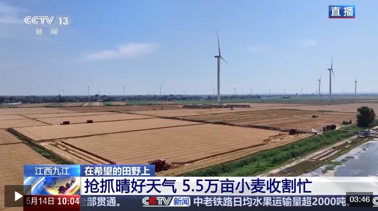 位于江西省九江市柴桑區(qū)的江洲鎮(zhèn)今年種植小麥5.5萬畝,占九江市小麥種植面積的三分之一。眼下那里的小麥已經(jīng)成熟,為了搶抓晴好天氣,當(dāng)?shù)胤e極組織機(jī)械收割。