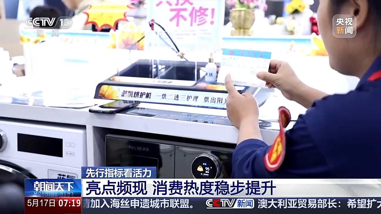 國家信息中心今天(17日)發(fā)布了一系列先行指標,記者從中發(fā)現(xiàn),4月份以來,在一系列宏觀政策協(xié)同發(fā)力下,消費、投資、工業(yè)生產等多領域保持向好態(tài)勢。