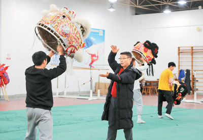 別看獅舞翻、滾、騰、躍輕盈靈敏,真想舞好,需要長(zhǎng)年累月練習(xí),正所謂“臺(tái)上一分鐘,臺(tái)下十年功”。向來(lái)自不同國(guó)家、說(shuō)不同語(yǔ)言和有不同功底的洋學(xué)生傳授舞獅藝術(shù),同樣絕非易事。