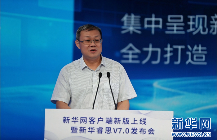 新華網(wǎng)黨委委員、首席信息官姚予疆介紹新華睿思7.0產(chǎn)品有關(guān)情況。新華網(wǎng) 劉廈 攝
