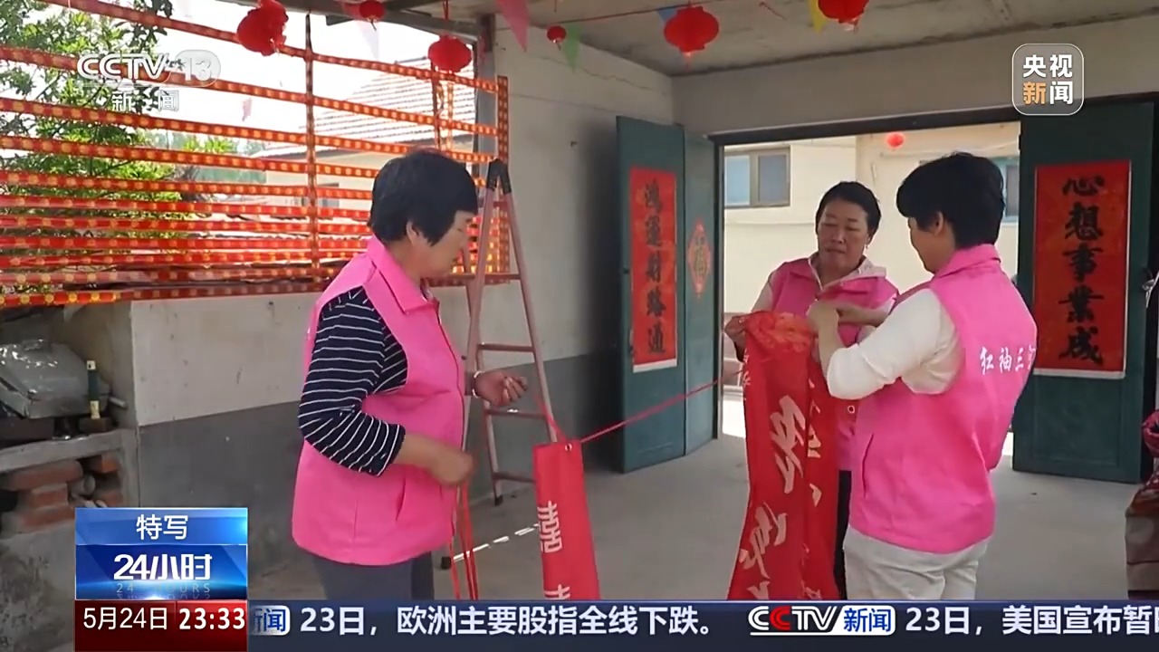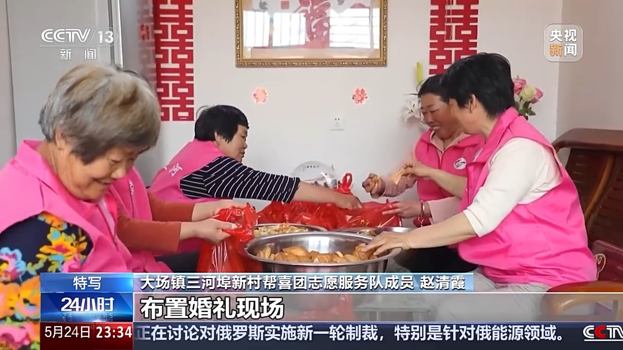距離兒子的婚禮還有三天,三河埠村村民魏祥年家里已經(jīng)忙碌起來。陪著老魏夫婦一起忙活的,除了親友,還有好幾位穿著粉色志愿服務(wù)馬甲的大姐。