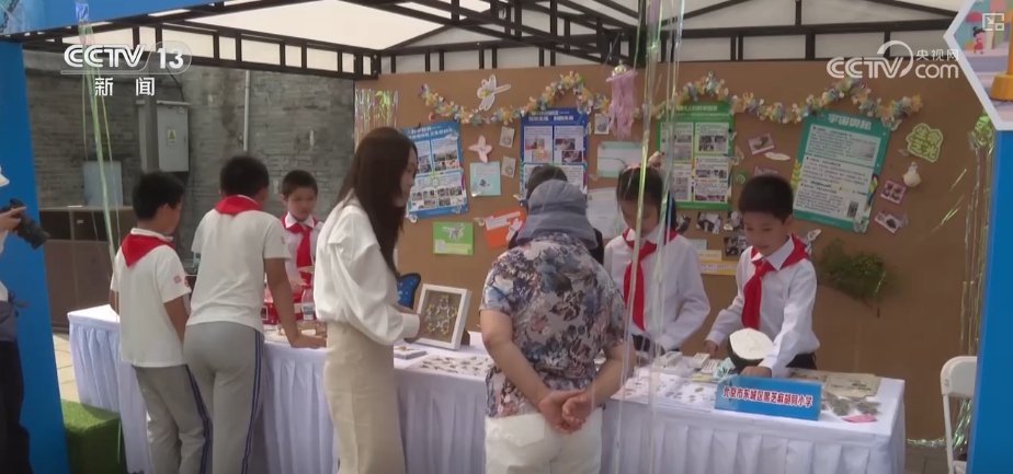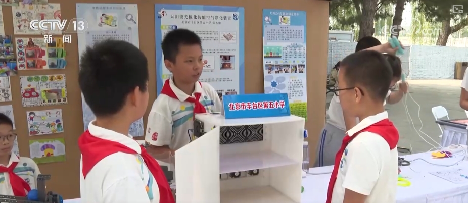 “科技強(qiáng)國”小學(xué)生社團(tuán)風(fēng)采展示活動也在現(xiàn)場同步開展。來自北京各個學(xué)校的少先隊科技社團(tuán)齊聚一堂,孩子們興致盎然地分享自己設(shè)計拼裝的投球機(jī)器人、巡防機(jī)器人、智能消毒碗柜等精彩紛呈的科技成果。