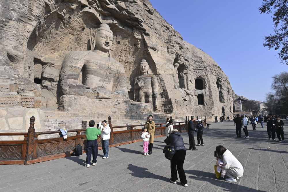 游客在云岡石窟參觀(2024年11月7日攝)。新華社記者 楊晨光 攝