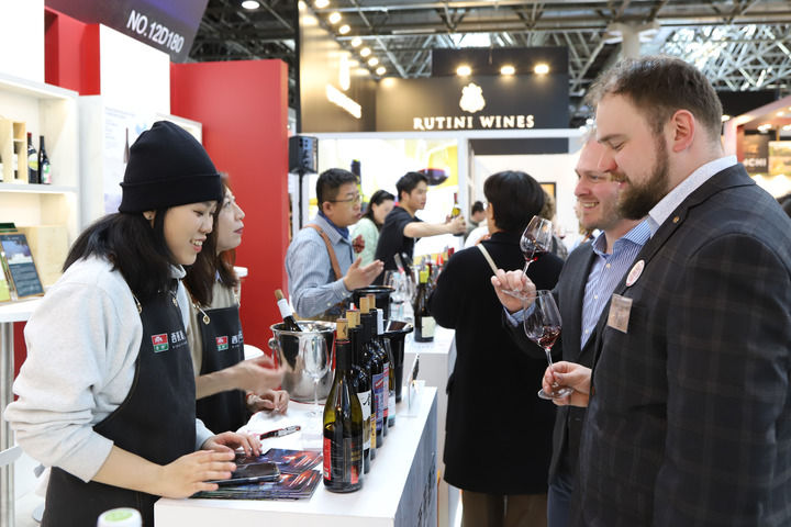 在德國杜塞爾多夫舉行的2025年杜塞爾多夫葡萄酒與烈酒展上,參觀者品嘗中國寧夏產(chǎn)區(qū)的葡萄酒(2025年3月16日攝)。