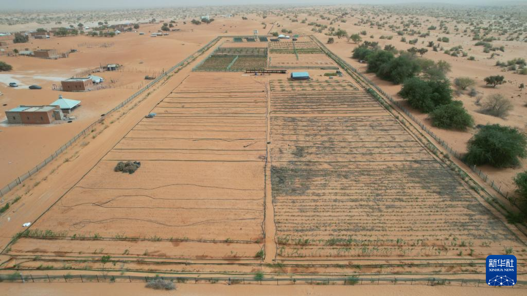 該示范項目由中毛雙方共同實施,中國科學院新疆生態(tài)與地理研究所提供示范區(qū)建設與后續(xù)技術支持。園區(qū)于2024年7月建成,占地4公頃,主要涵蓋外圍防沙阻沙區(qū)域、經濟果林區(qū)、沙土蔬菜種植區(qū)、牧草種植區(qū)及家禽養(yǎng)殖區(qū)。比爾·巴爾卡村位于首都努瓦克肖特以東約70公里的沙漠邊緣。“我們當初選址時就考慮靠近首都圈,便于技術展示和后續(xù)培訓推廣?!痹H赴毛里塔尼亞參與項目建設的中方專家、中國科學院新疆生態(tài)與地理研究所沙漠研究團隊成員周娜介紹說。
