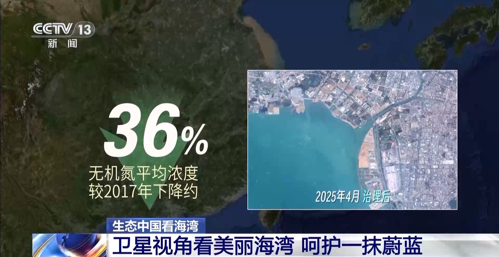 通過(guò)遙感影像對(duì)比,在山東東營(yíng)黃河口灣區(qū),繁殖力強(qiáng)大的外來(lái)物種——互花米草,已初步實(shí)現(xiàn)有效控制。在珠江口廣東深圳段,海上漁排被清退,海域主要超標(biāo)因子無(wú)機(jī)氮平均濃度較2017年下降近36%,風(fēng)景宜人的海岸吸引游客慕名而來(lái)。