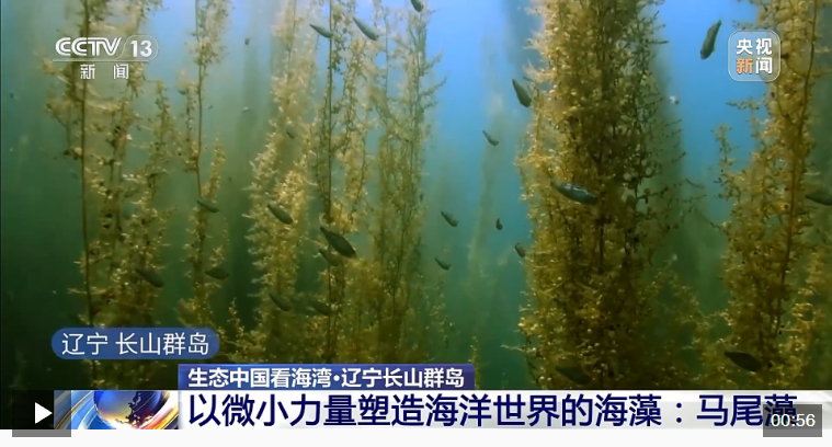 在遼寧長(zhǎng)山群島有一種叫馬尾藻的海洋藻類(lèi),它們一束束地纏繞在一起,最長(zhǎng)的可達(dá)十幾米。我國(guó)是馬尾藻主要產(chǎn)地之一,藻類(lèi)群落不僅是眾多海洋生物的棲息地,還在全球碳循環(huán)、海洋生態(tài)平衡中扮演著重要角色。在海水中,它的顏色是深黃綠色。