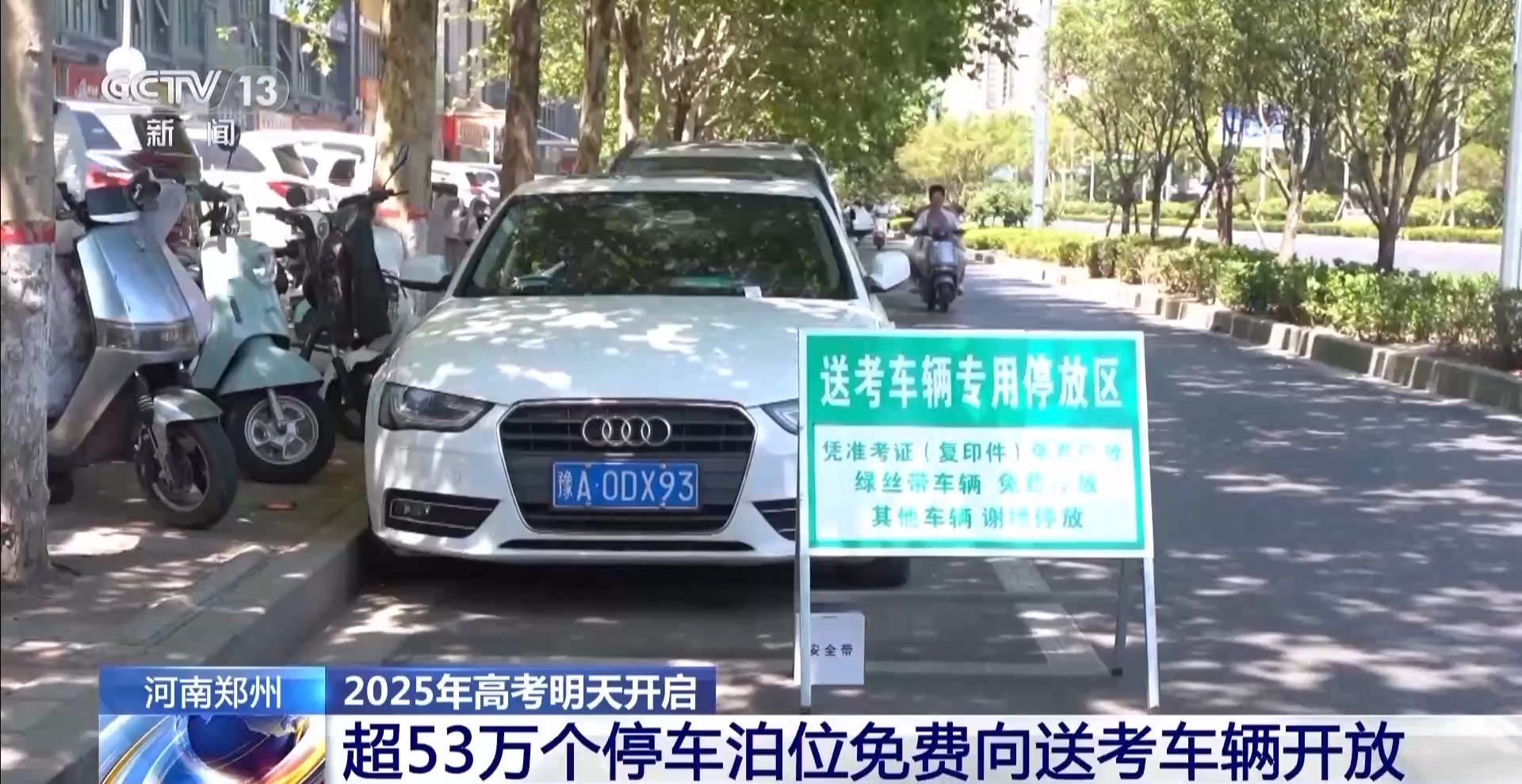 在河南鄭州,公交、城管等部門通過開展噪聲管控、開放免費停車泊位。在鄭州市一個考點附近,周邊的道路停車泊位上,已經(jīng)設(shè)置了“送考車輛專用停放區(qū)”的引導牌。旁邊一個經(jīng)營性停車場,考試期間也向送考車輛免費開放。據(jù)了解,今年高考期間,鄭州城管部門共設(shè)置各類高考停車泊位超53萬個。