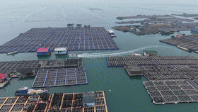 3月18日,福建省寧德市霞浦縣三沙鎮(zhèn)海域的海洋牧場(chǎng),養(yǎng)殖工人在進(jìn)行養(yǎng)殖作業(yè)。新華社發(fā)(王旺旺攝)