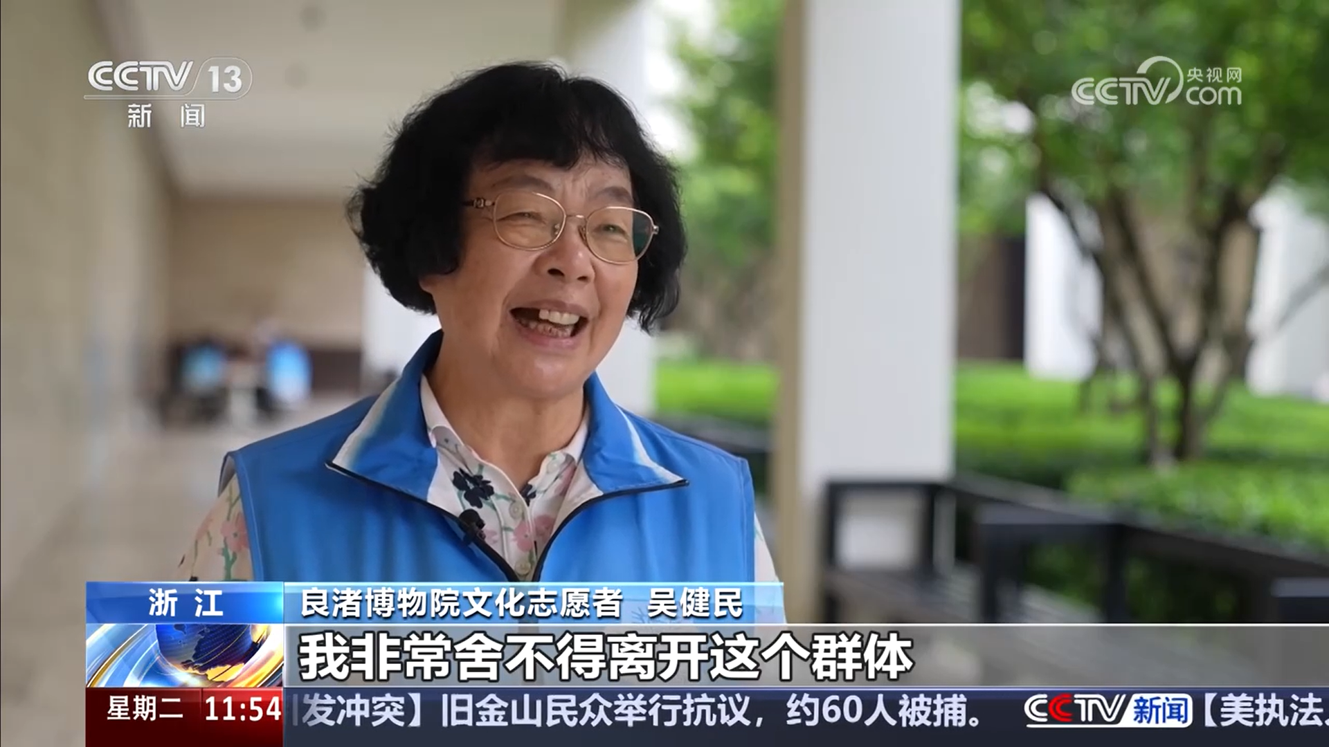 良渚博物院文化志愿者 陳中柱:銀齡志愿者這個團隊有老年人那種凝聚力。我雖然退休了,但是老有所為,老有所樂。