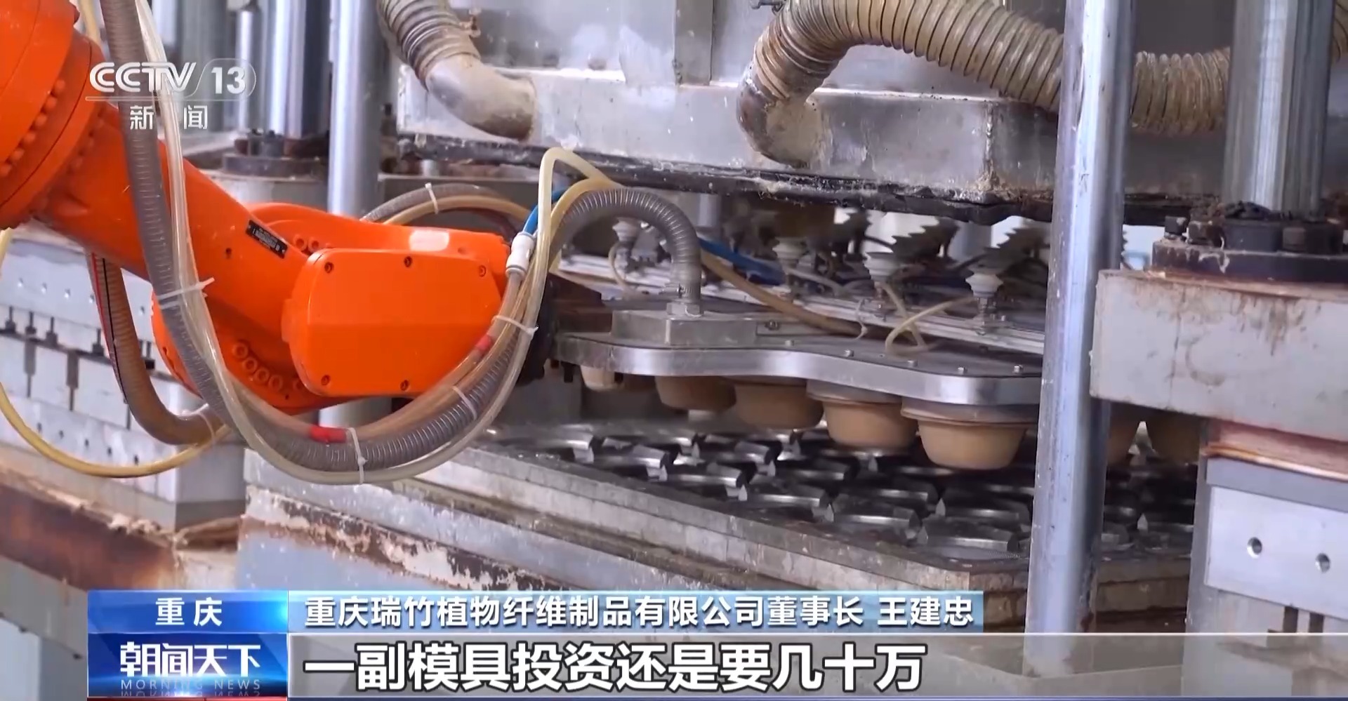 重慶瑞竹植物纖維制品有限公司董事長 王建忠:我們要根據(jù)市場的需求開發(fā)新的模具,一副模具投資要幾十萬,這種產(chǎn)業(yè)線我們已經(jīng)上了12條,馬上我們還準(zhǔn)備新建一個(gè)車間,再上16條生產(chǎn)線。