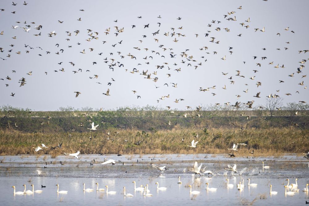 2024年11月12日在上海崇明東灘鳥類國家級自然保護(hù)區(qū)拍攝的候鳥。新華社記者 王翔 攝