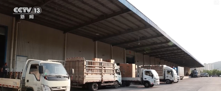 山東濟(jì)南最大的一個(gè)家電物流中心倉(cāng),負(fù)責(zé)當(dāng)?shù)?7個(gè)縣域的家電物流配送工作。當(dāng)記者來到這里時(shí),正趕上這里的作業(yè)高峰,十幾輛物流車排成一列,等待裝貨發(fā)車。